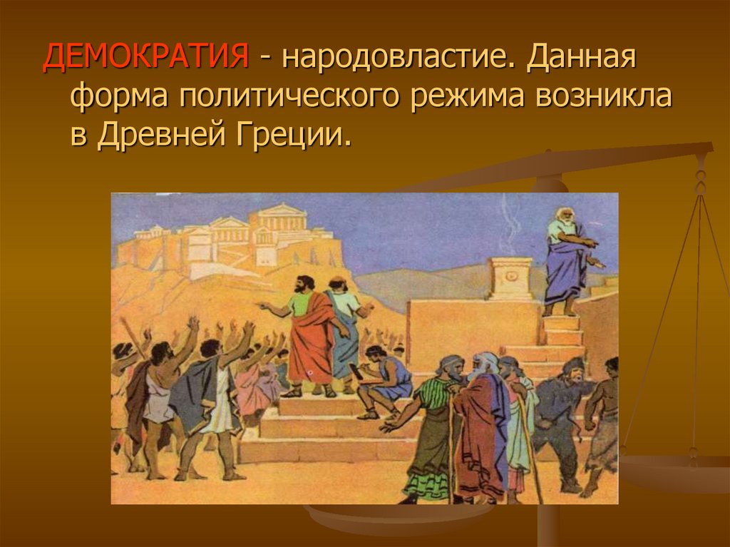 ДЕМОКРАТИЯ - народовластие. Даннаяформа политического режима возникла