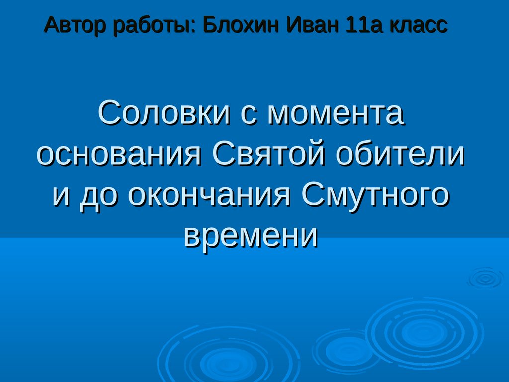 Автор работы: Блохин Иван 11а классСоловки с момента