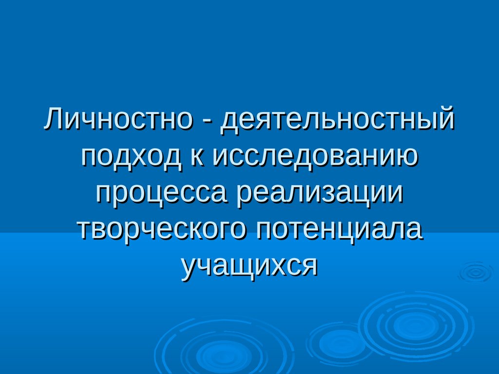 Личностно – деятельностный подход к исследованию процесса реализациитворческого потенциала учащихся