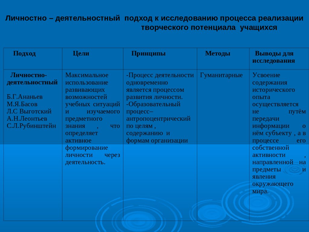 Личностно - деятельностныйподход к исследованию