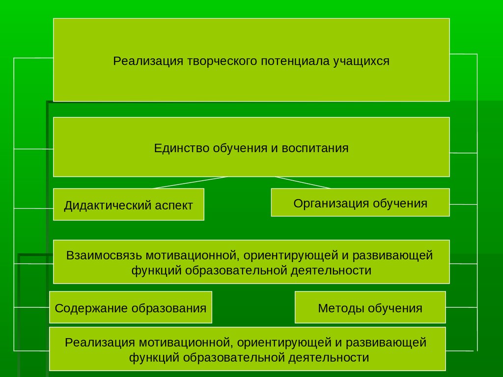 Реализация творческого потенциала учащихсяЕдинство обучения и воспитания