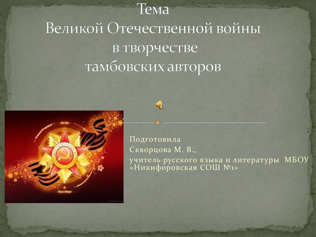 1. Тема Великой Отечественной войны в творчестве тамбовских авторов