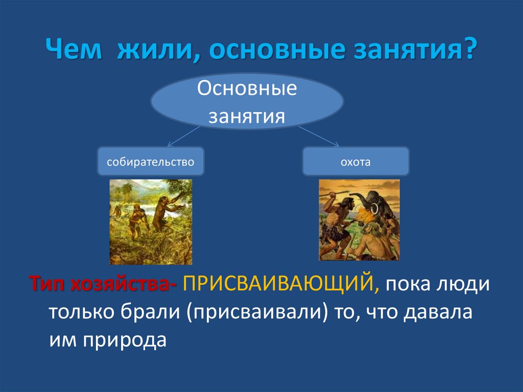 Тип хозяйства- ПРИСВАИВАЮЩИЙ, пока люди