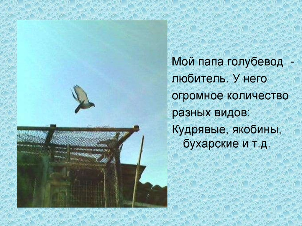 Мой папа голубевод любитель. У негоогромное количество