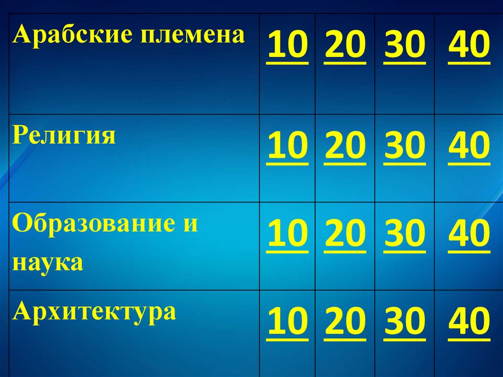 Арабские племена10 20 30 40