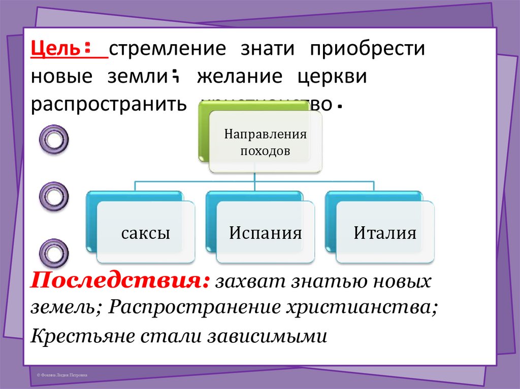 Цель: стремление знати приобрестиновые земли; желание церкви