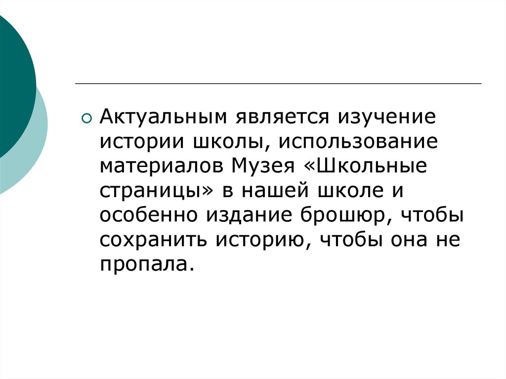 Актуальным является изучениеистории школы, использование