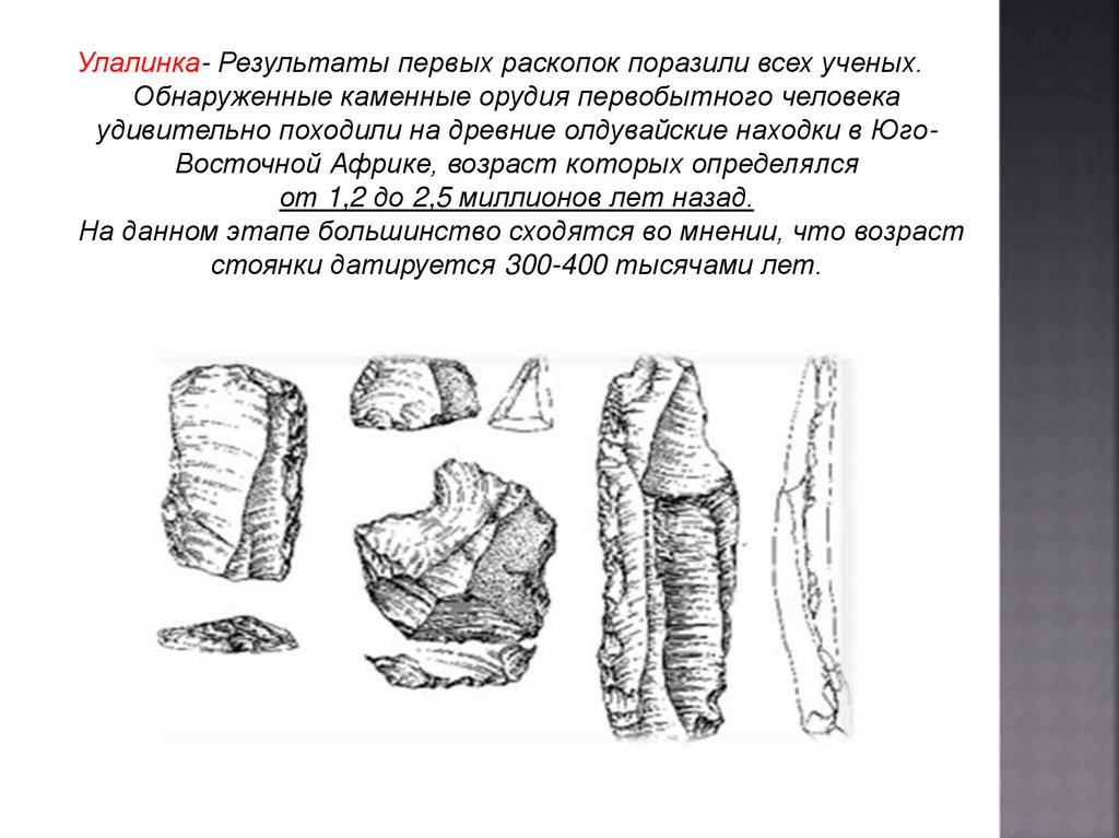 Улалинка- Результаты первых раскопок поразили всех ученых.Обнаруженные каменные орудия первобытного человека
