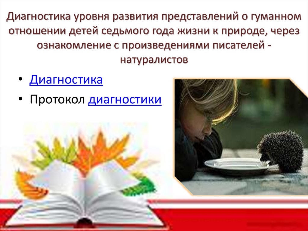 Диагностика уровня развития представлений о гуманномотношении детей седьмого года жизни к природе, через