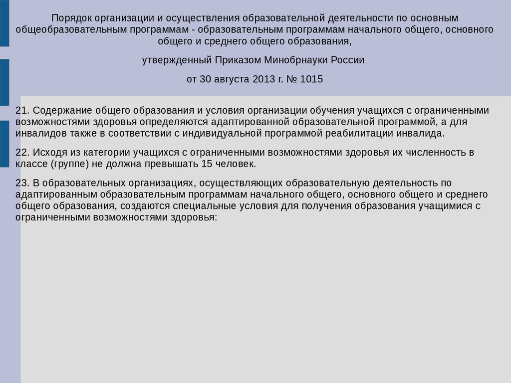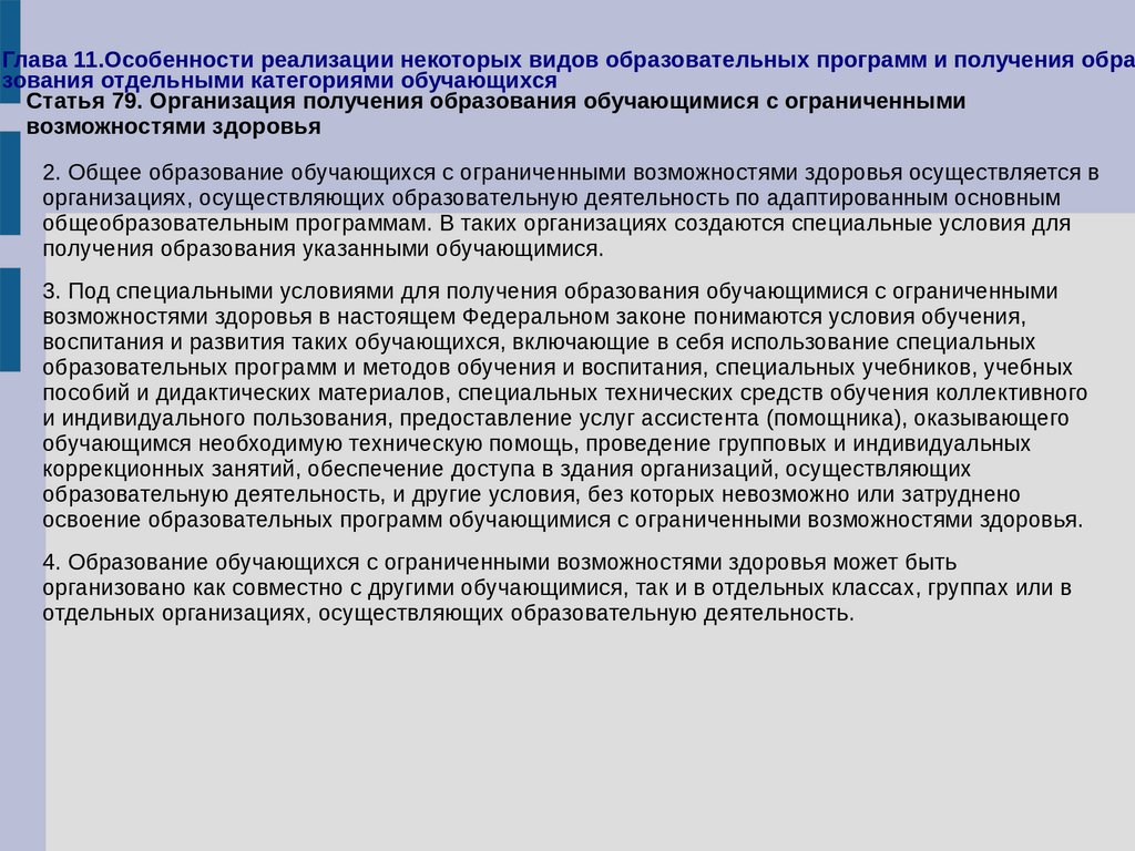 21. Содержание общего образования и условия организации обучения учащихся с ограниченными