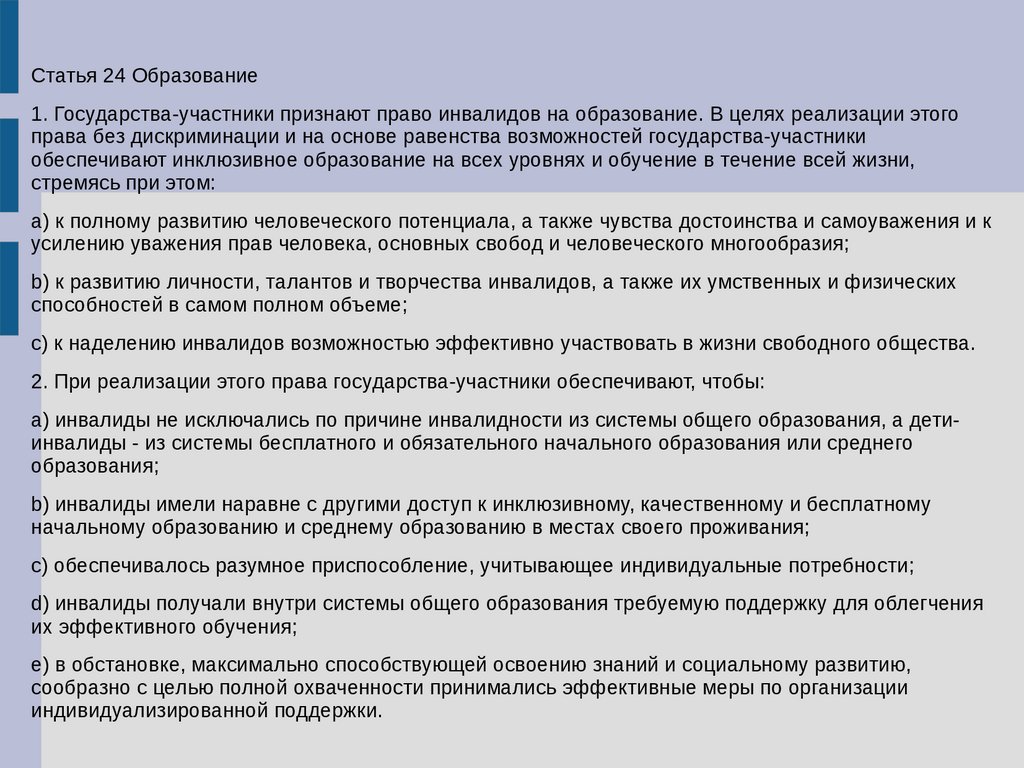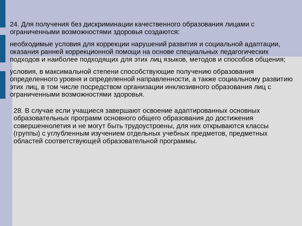 24. Для получения без дискриминации качественного образования лицами сограниченными возможностями здоровья создаются: