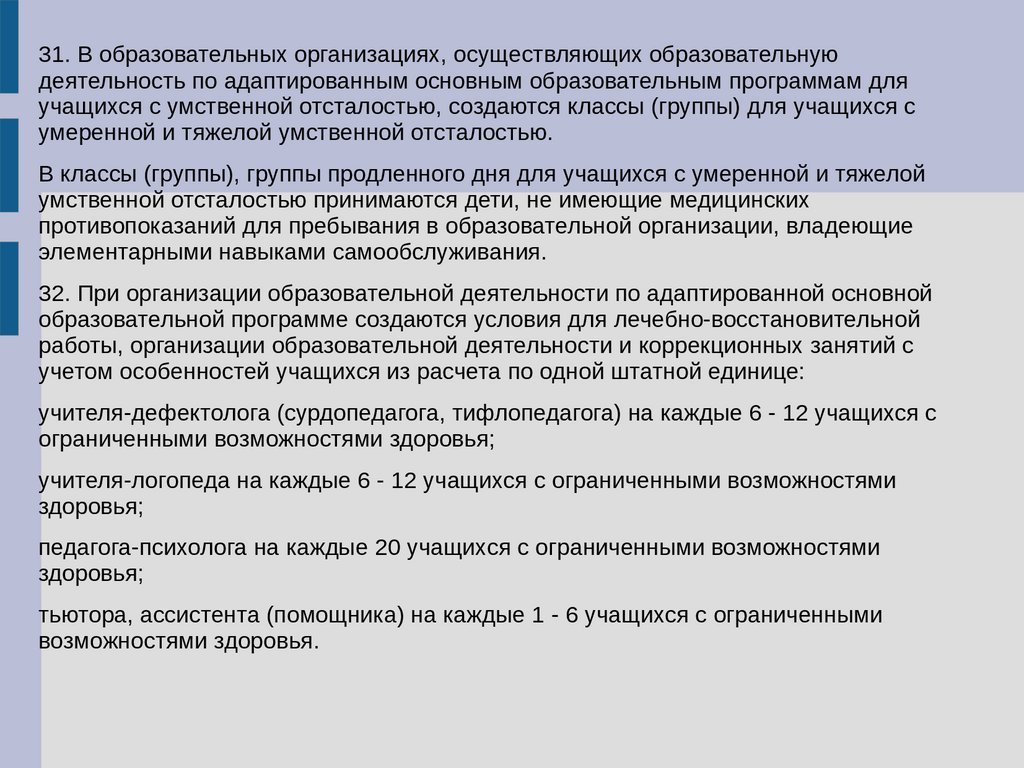 31. В образовательных организациях, осуществляющих образовательнуюдеятельность по адаптированным основным образовательным программам для