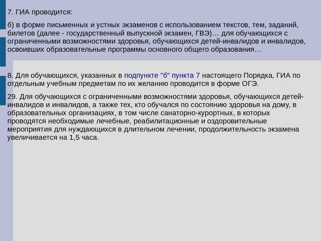7. ГИА проводится:б) в форме письменных и устных экзаменов с использованием текстов, тем, заданий,