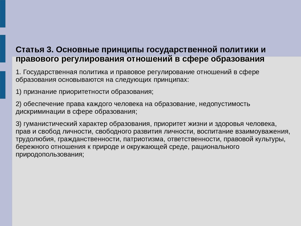 Статья 3. Основные принципы государственной политики иправового регулирования отношений в сфере образования