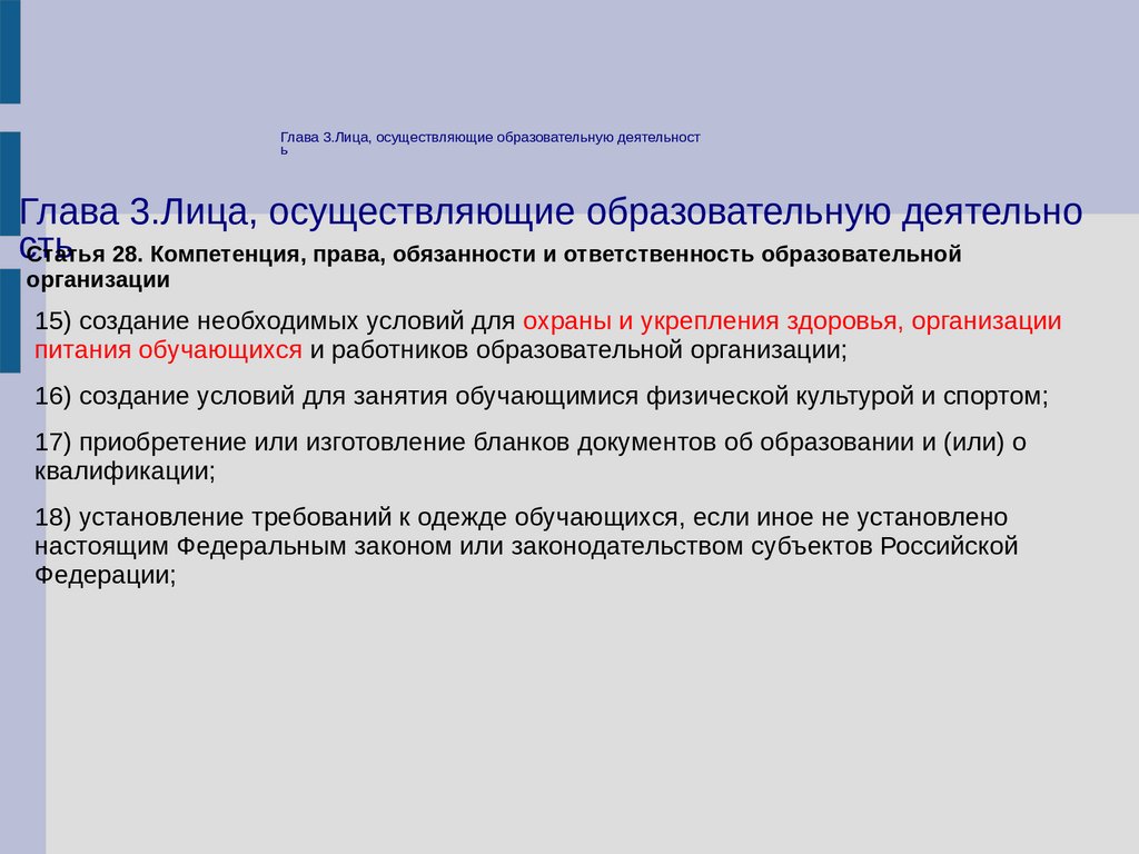 Статья 28. Компетенция, права, обязанности и ответственность образовательной