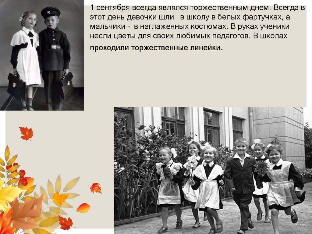 1 сентября всегда являлся торжественным днем. Всегда вэтот день девочки шли в школу в белых фартучках, а