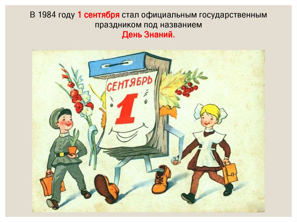 В 1984 году 1 сентября стал официальным государственнымпраздником под названием