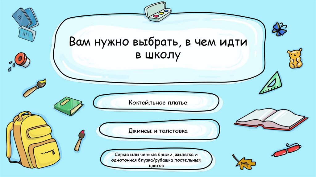 Вам нужно выбрать, в чем идтив школу