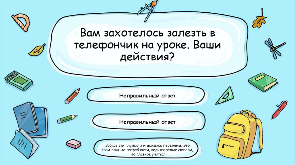 Вам захотелось залезть втелефончик на уроке. Ваши