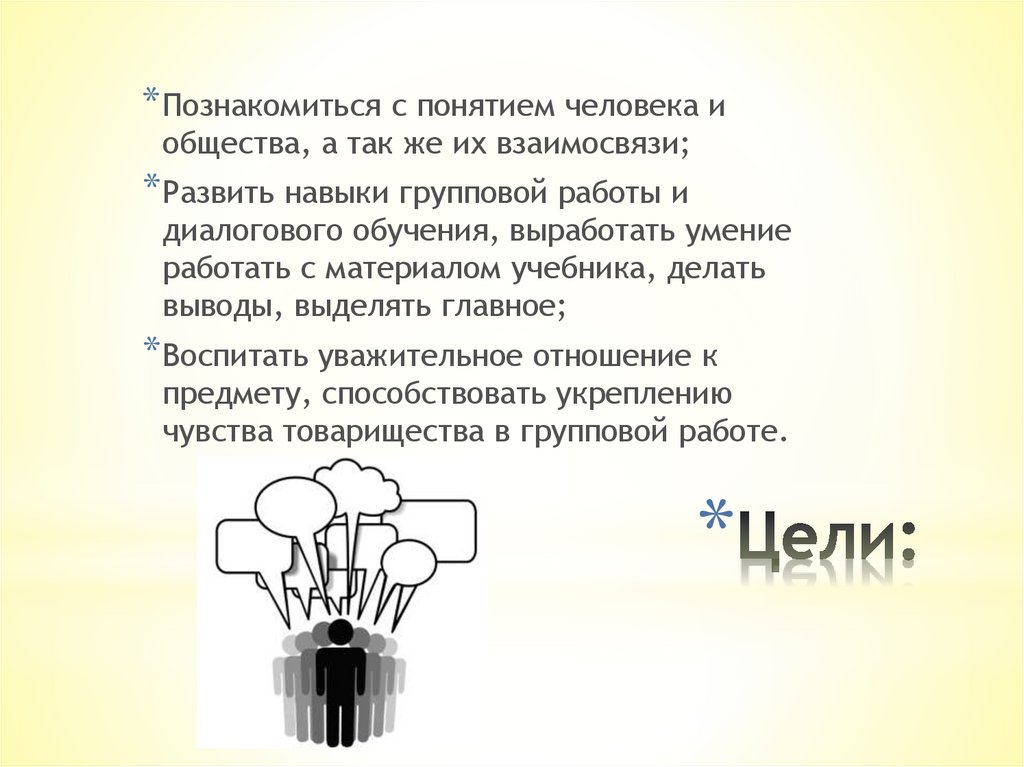 * Познакомиться с понятием человека иобщества, а так же их взаимосвязи;