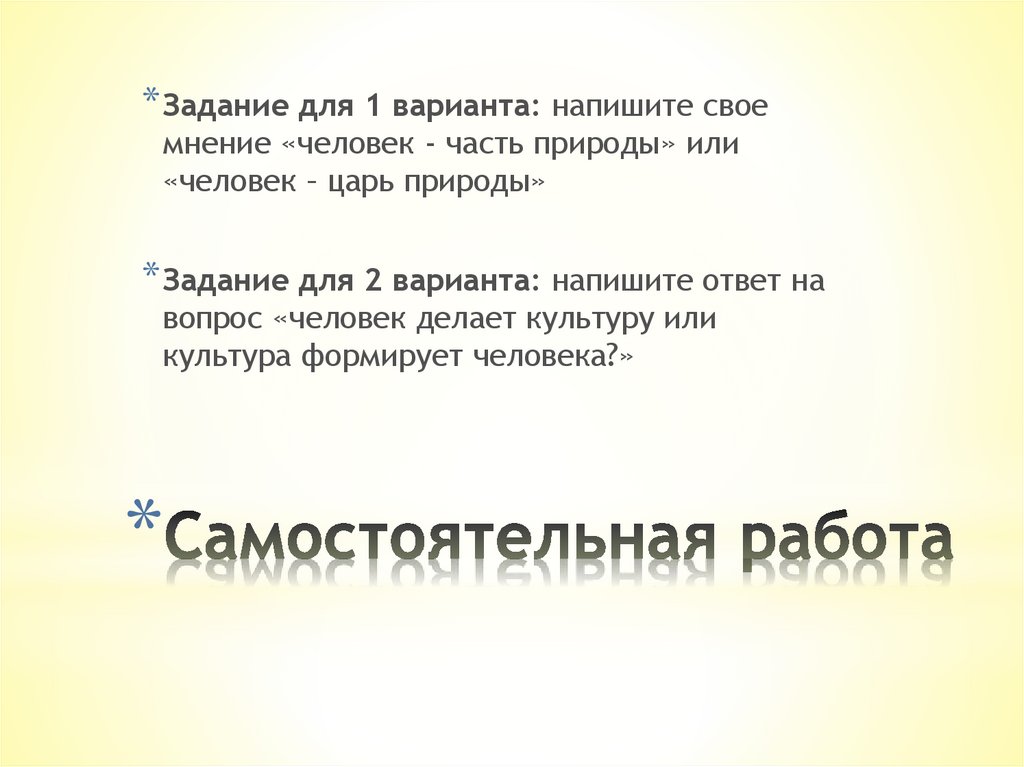 * Задание для 1 варианта: напишите своемнение «человек - часть природы» или