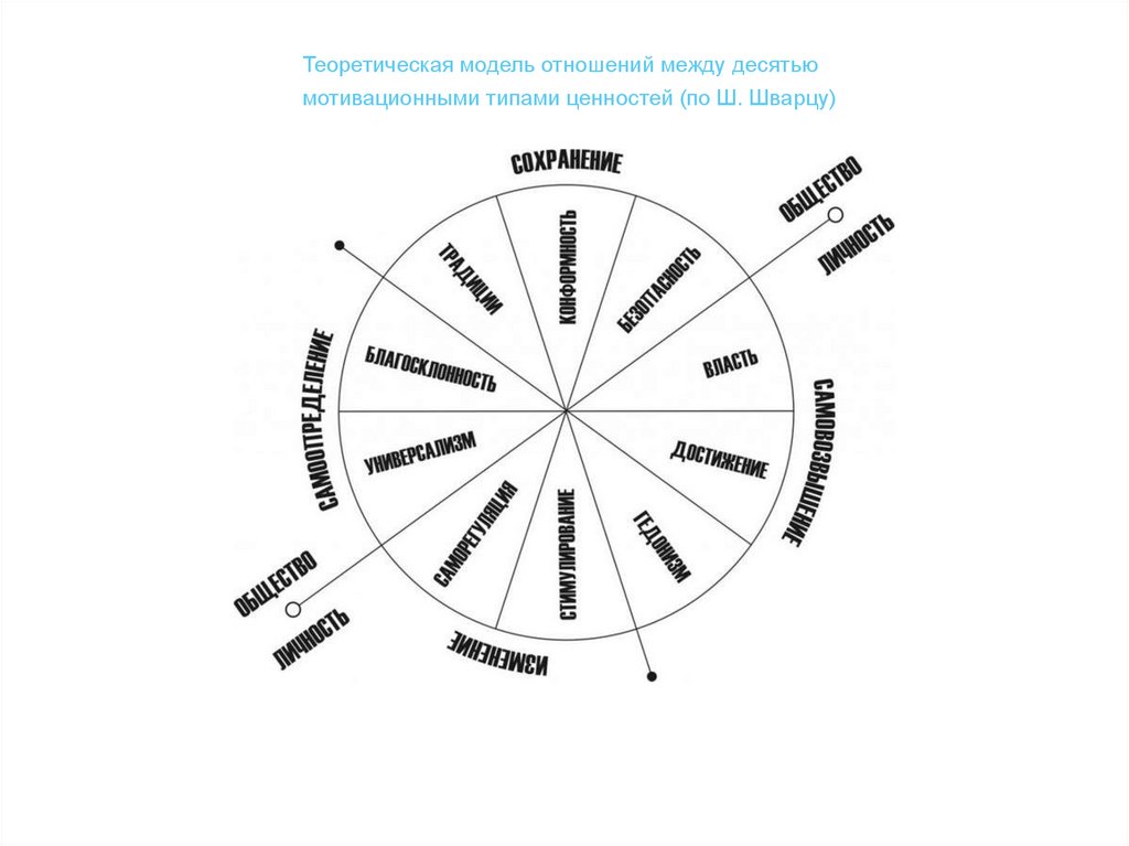 Теоретическая модель отношений между десятьюмотивационными типами ценностей (по Ш. Шварцу)