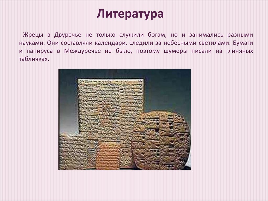 ЛитератураЖрецы в Двуречье не только служили богам, но и занимались разными