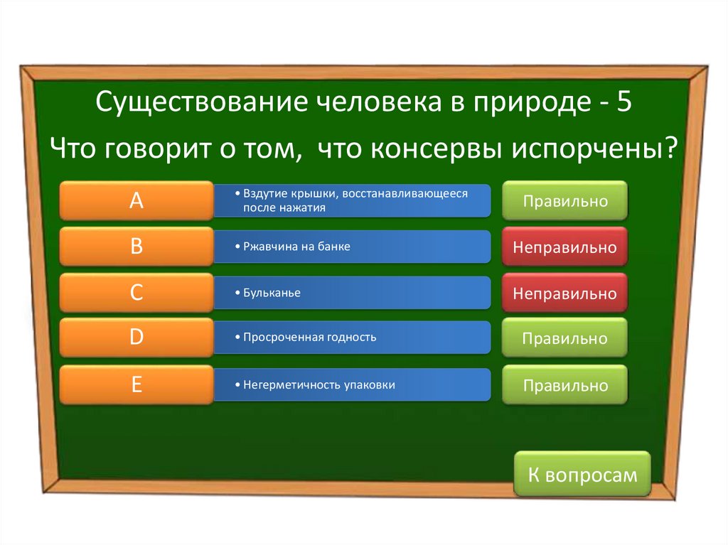 Существование человека в природе - 5Что говорит о том, что консервы испорчены?