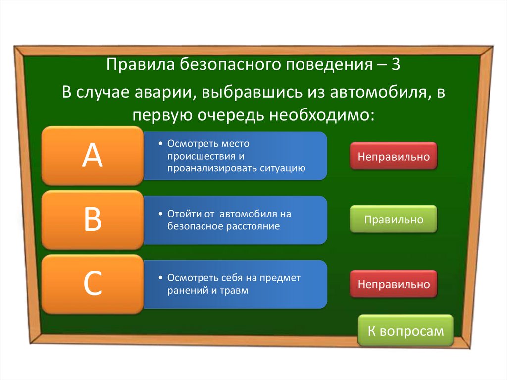 Правила безопасного поведения – 3В случае аварии, выбравшись из автомобиля, в