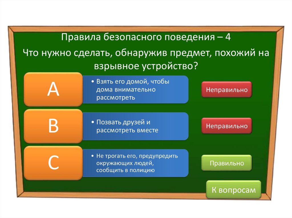 Правила безопасного поведения – 4Что нужно сделать, обнаружив предмет, похожий на