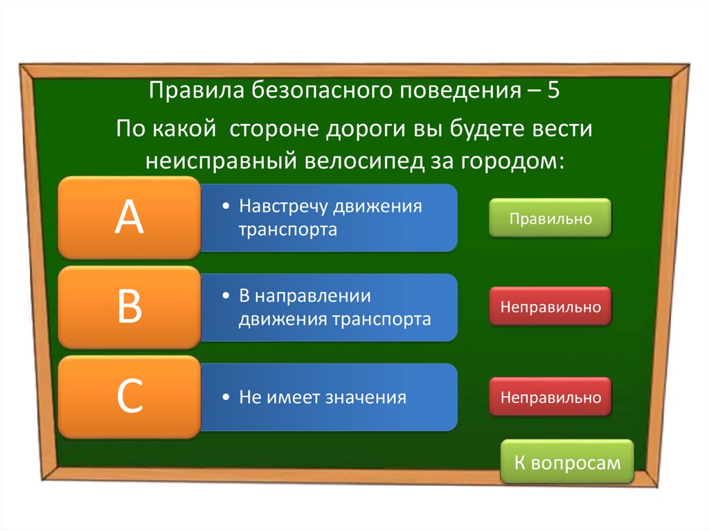 Правила безопасного поведения – 5По какой стороне дороги вы будете вести
