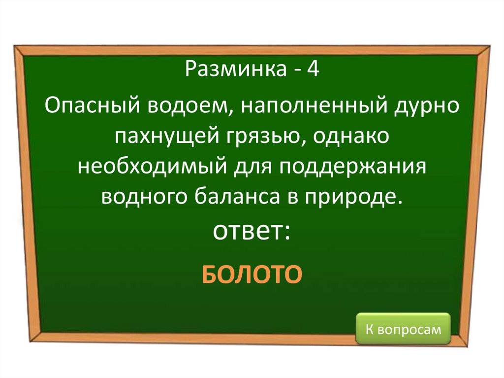 Разминка - 4Опасный водоем, наполненный дурно