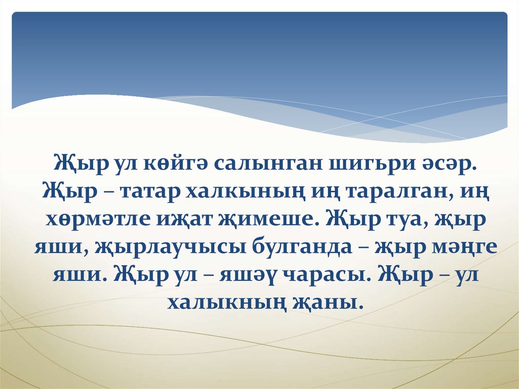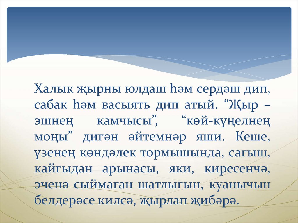 яши. Җыр ул – яшәү чарасы. Җыр – ул