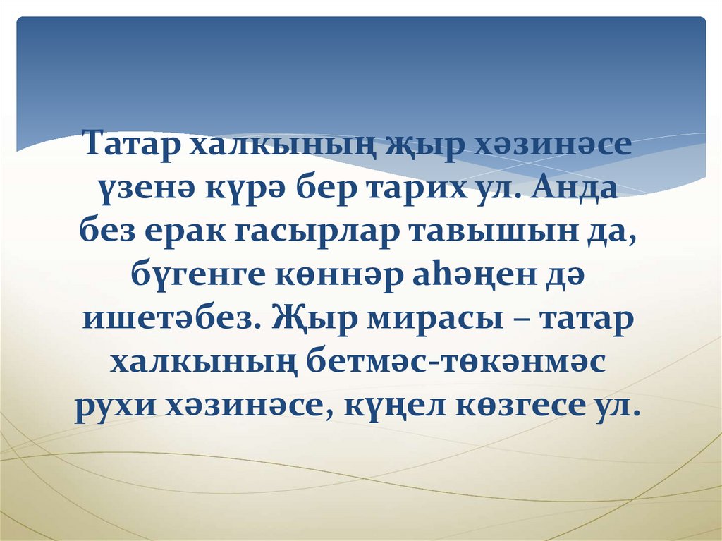 Татар халкының җыр хәзинәсеүзенә күрә бер тарих ул. Анда