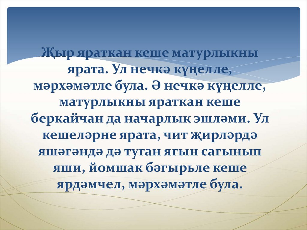 Җыр яраткан кеше матурлыкныярата. Ул нечкә күңелле,