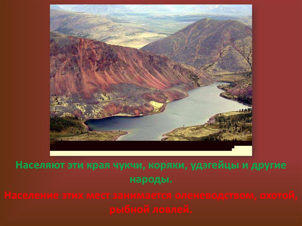 Населяют эти края чукчи, коряки, удэгейцы и другиенароды.