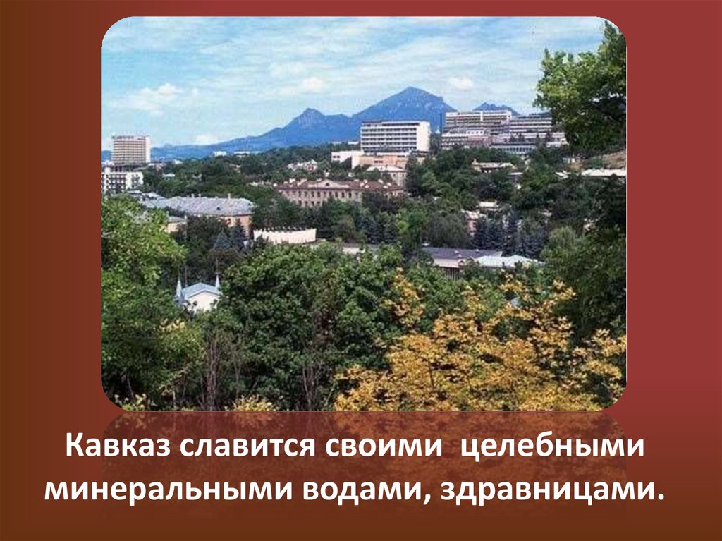 Кавказ славится своими целебнымиминеральными водами, здравницами.