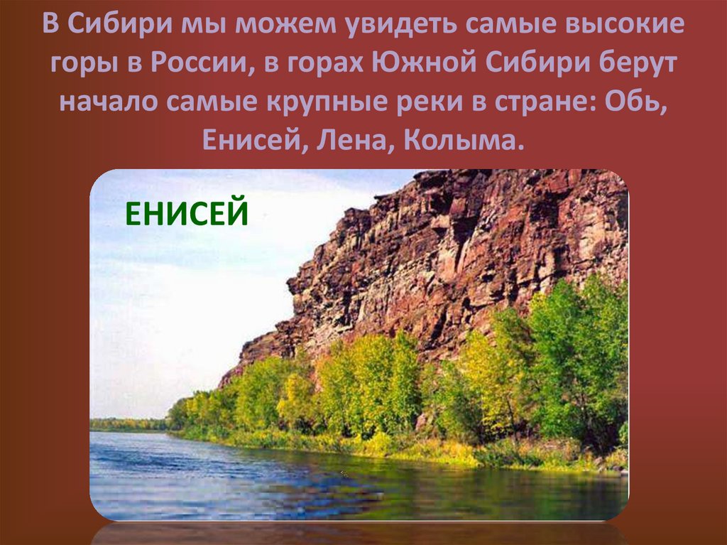 В Сибири мы можем увидеть самые высокиегоры в России, в горах Южной Сибири берут