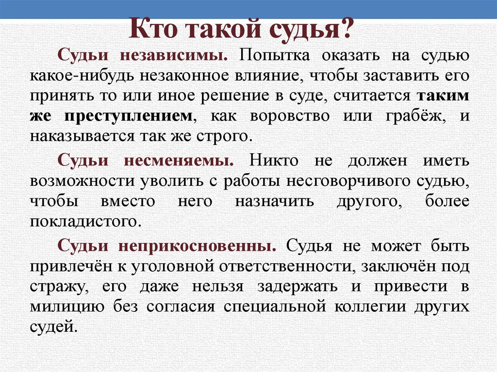 Кто такой судья?Судья - носитель судебной власти. Судит