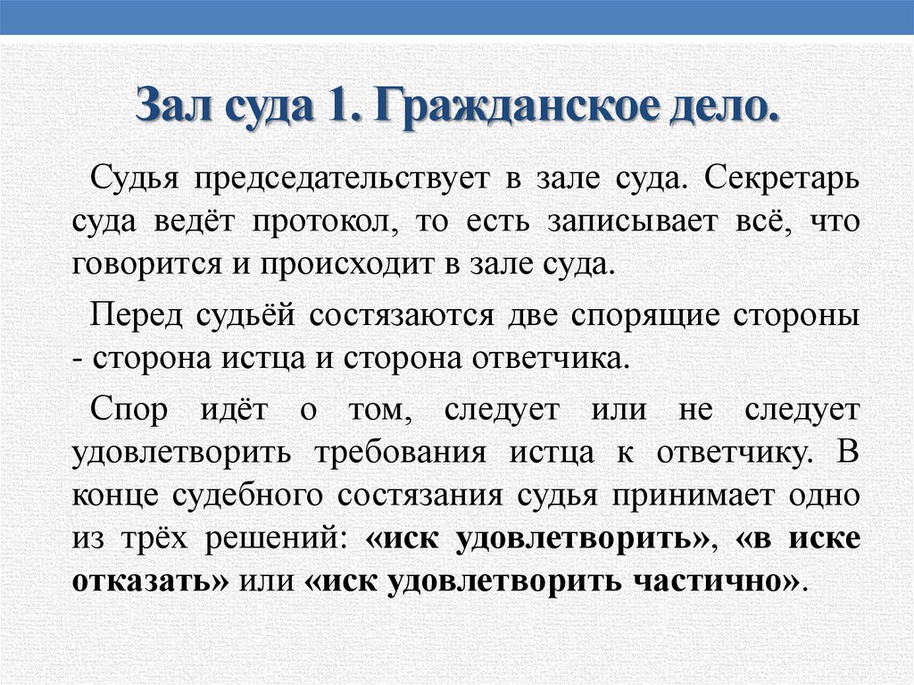 Зал суда 1. Гражданское дело.5.