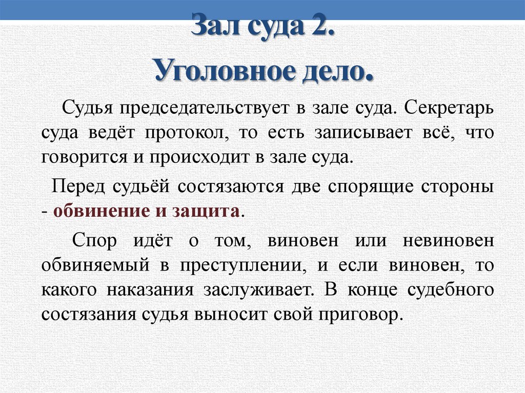 Зал суда 2.Уголовное дело.