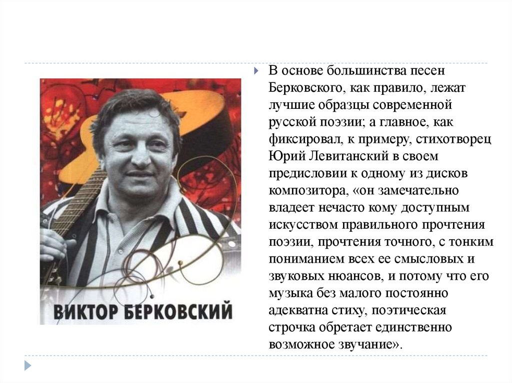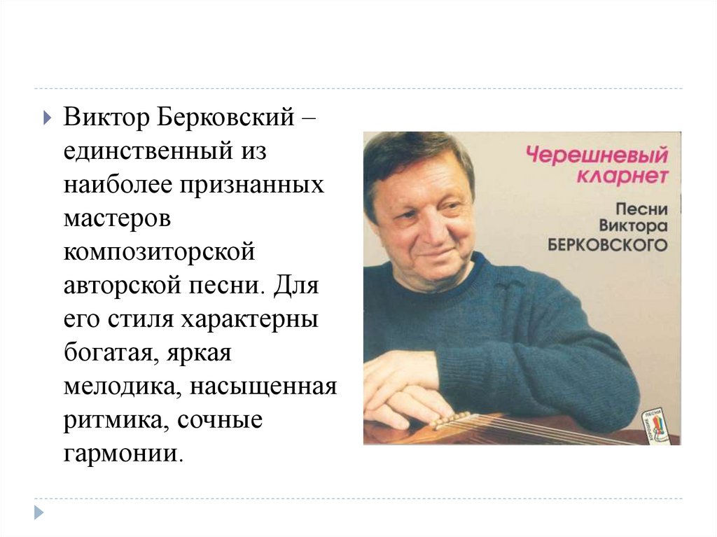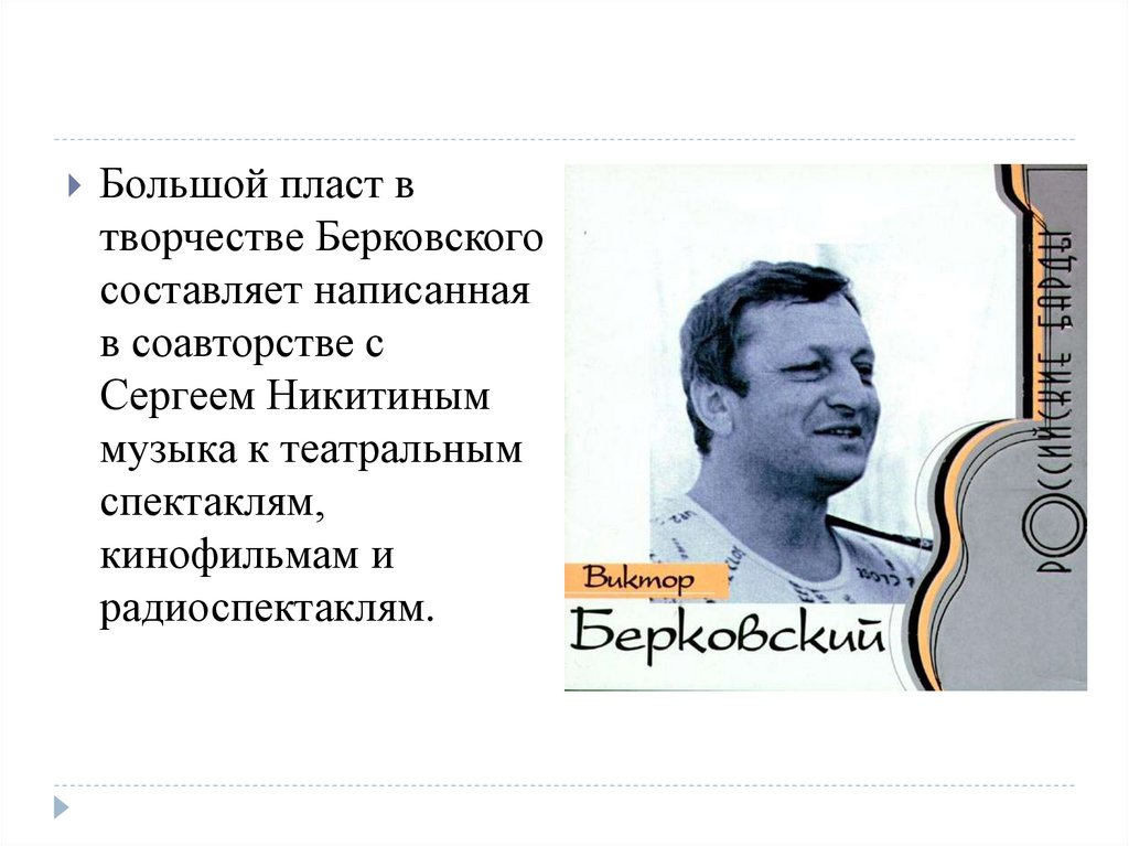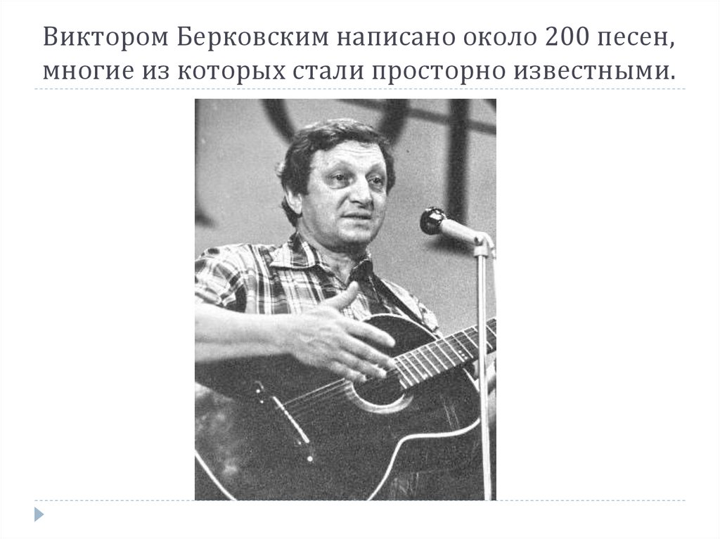 Виктором Берковским написано около 200 песен,многие из которых стали просторно известными.