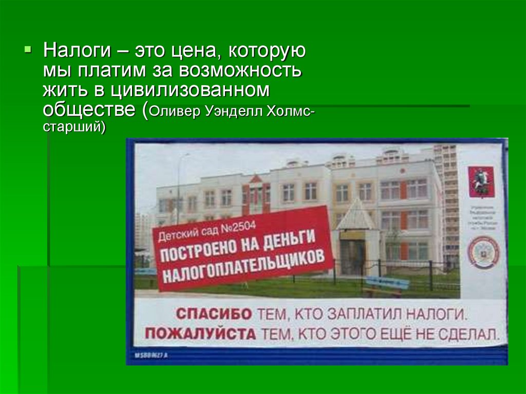 Налоги – это цена, которуюмы платим за возможность