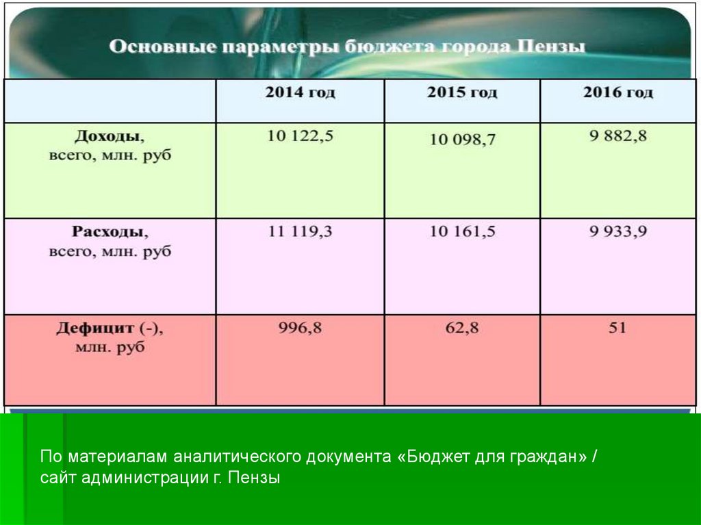 По материалам аналитического документа «Бюджет для граждан» /сайт администрации г. Пензы