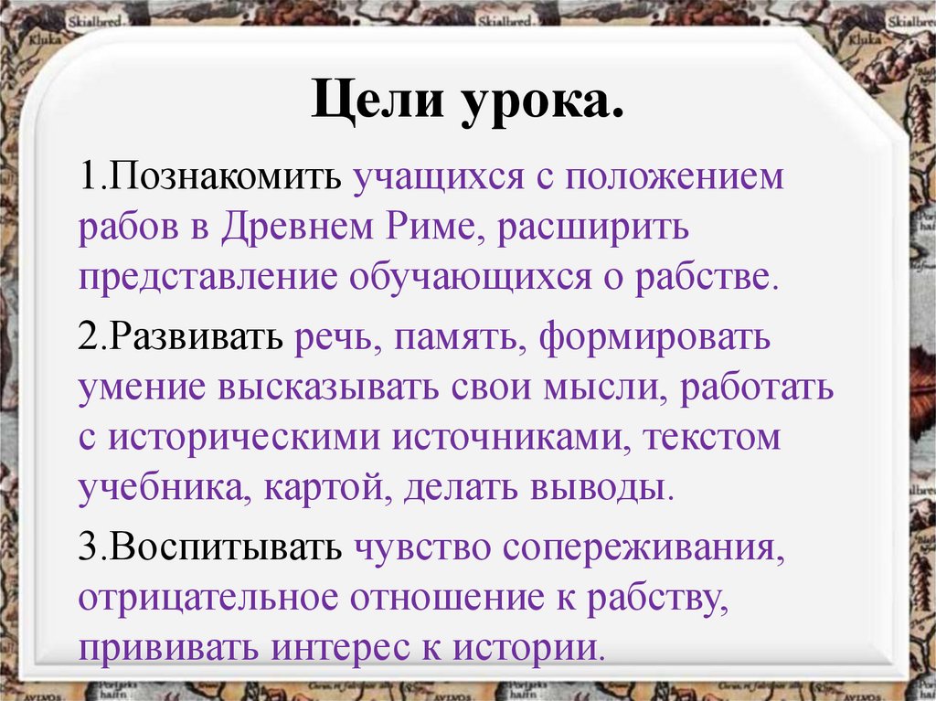 Цели урока.1.Познакомить учащихся с положением
