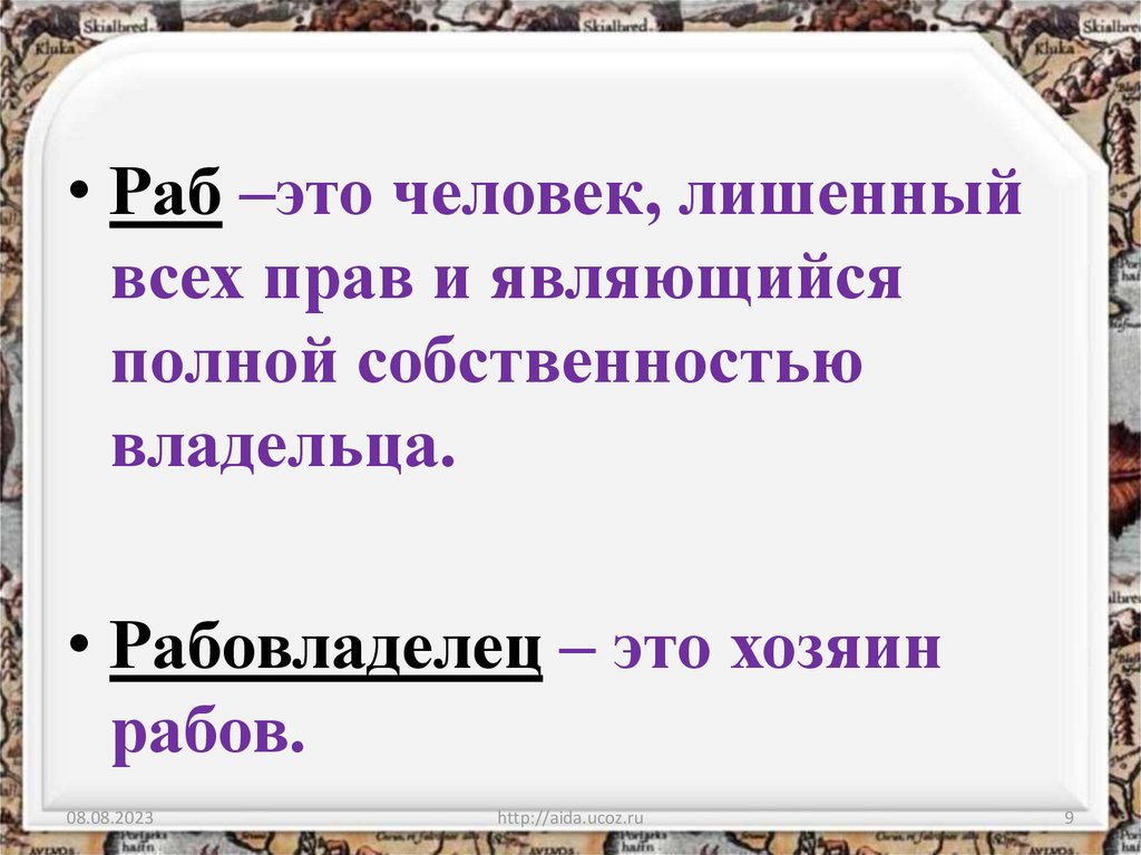 • Раб –это человек, лишенныйвсех прав и являющийся