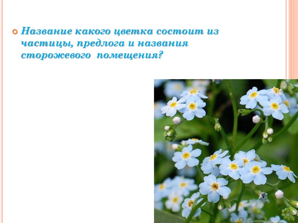 Название какого цветка состоит изчастицы, предлога и названия