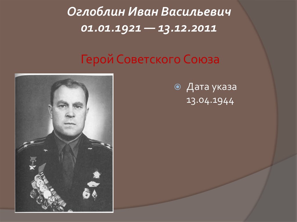 Оглоблин Иван Васильевич01.01.1921 — 13.12.2011