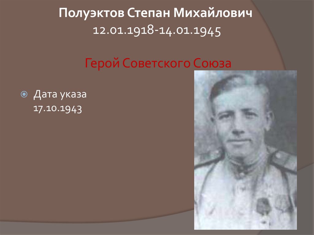 Полуэктов Степан Михайлович12.01.1918-14.01.1945