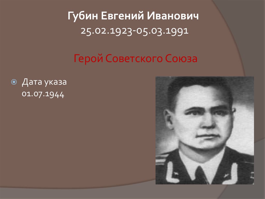 Губин Евгений Иванович25.02.1923-05.03.1991